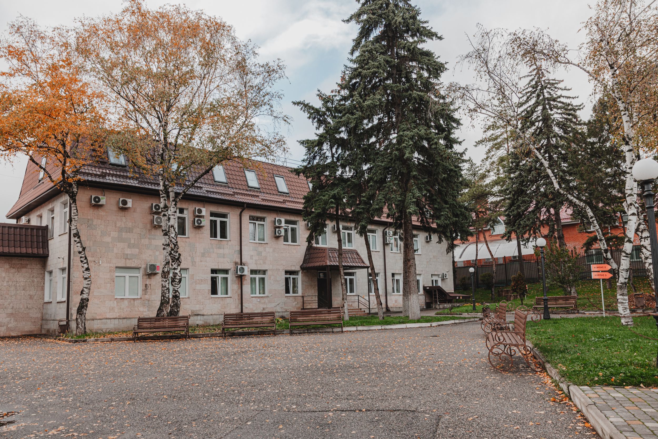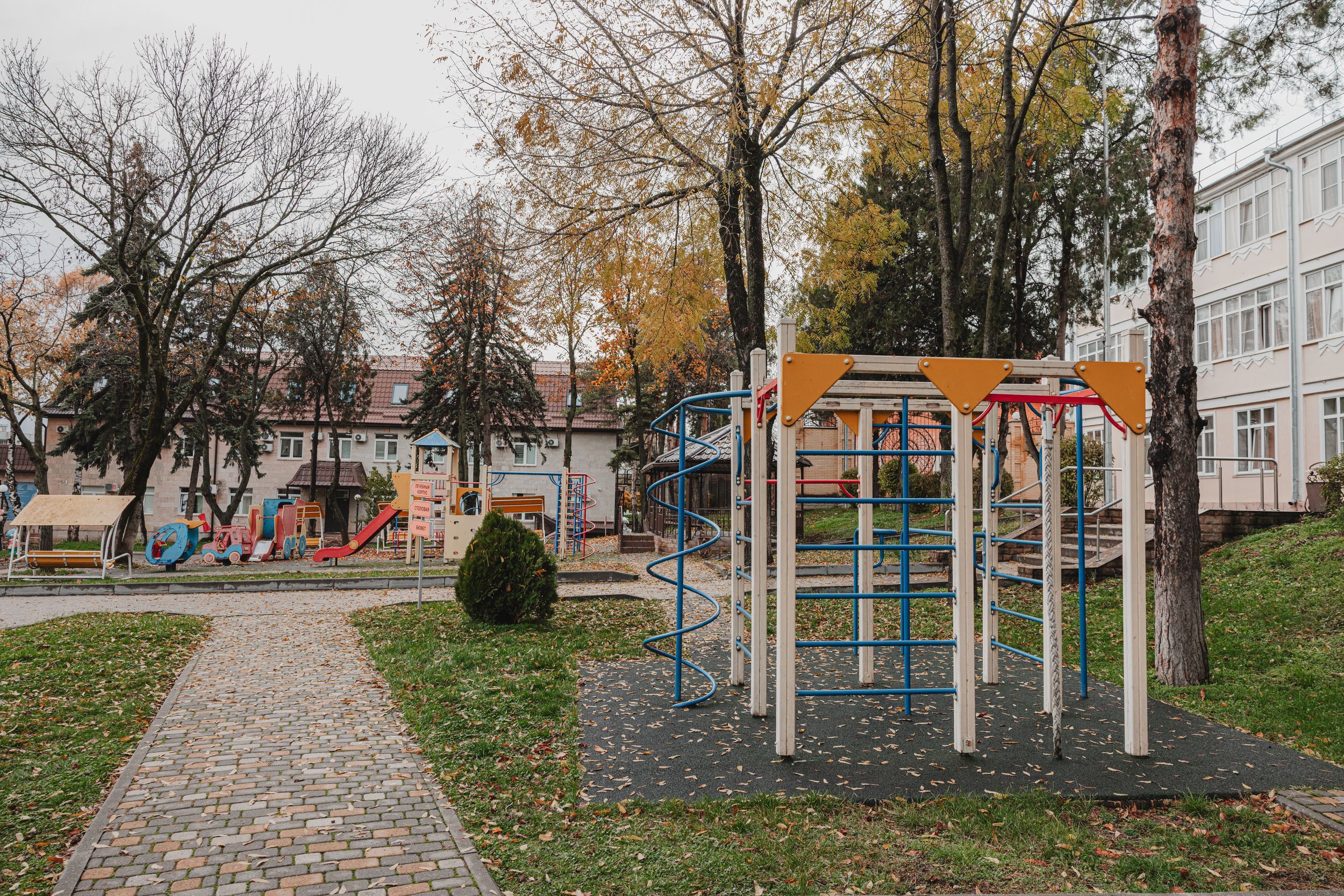Центр предлагает размещение в комфортабельных номерах, оборудованных всей необходимой мебелью и бытовой техникой. Для детей предусмотрен отдельный корпус с безопасной мебелью и развивающей средой. Территория центра утопает в зелени и находится в шаговой доступности от знаменитого Курортного парка.